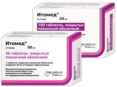 Итомед выпускается в виде таблеток, покрытых оболочкой, в дозировке 50 мг по 20 таблеток в блистере, 2 или 5 блистеров в упаковке.